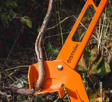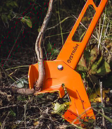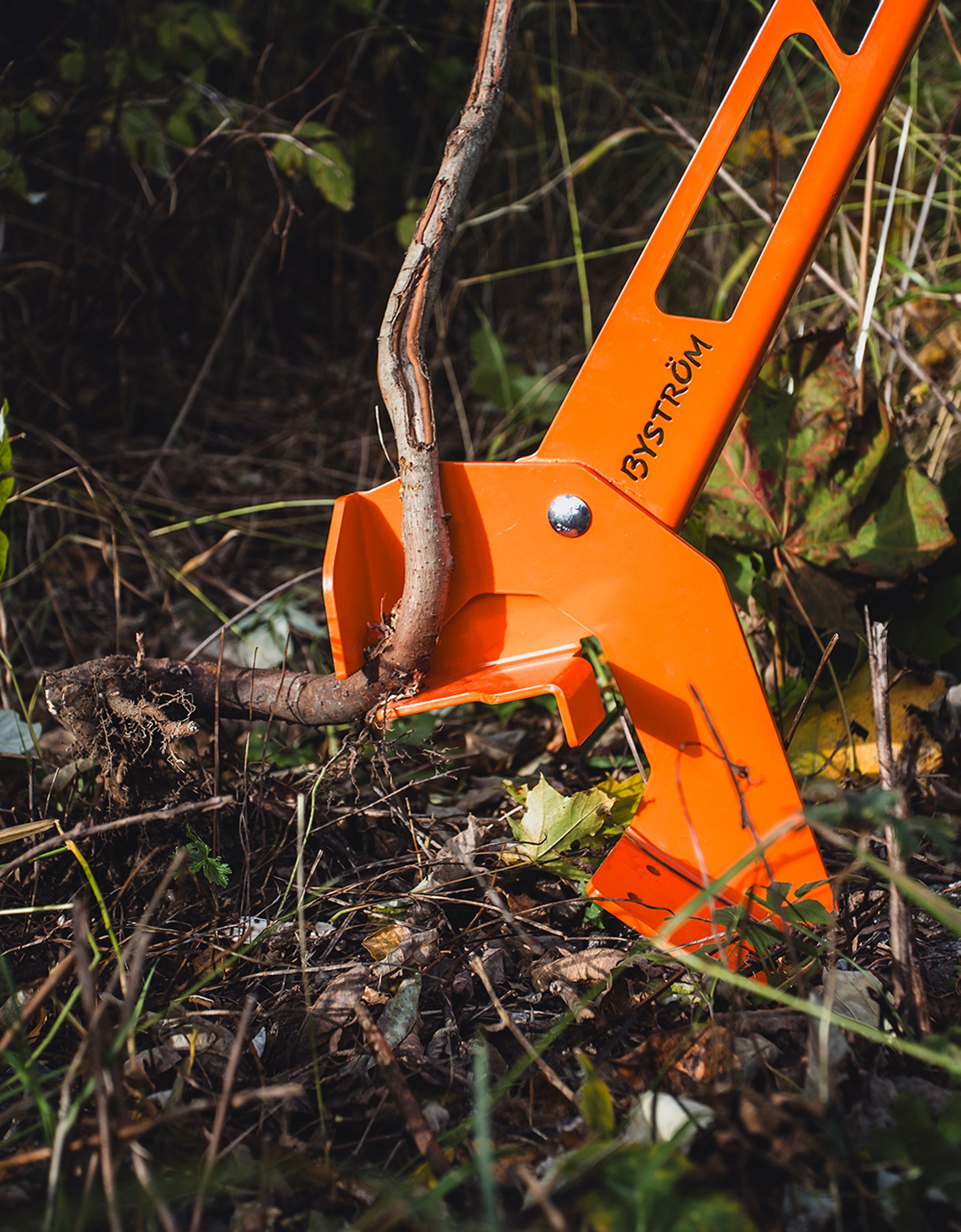 Ett handverktyg för att enkelt avlägsna sly och buskar inklusive roten. Verktyget är mycket effektivt – det greppar stammen och använder en hävarm för att fyrdubbla dragkraften på växten. Fungerar bäst på sly med stamdiameter upp till 30 mm. Robust design i pulverlackat högkvalitativt stål. Vikt: 5,4 kg. Svensktillverkad. Patenterad och mönsterskyddad.